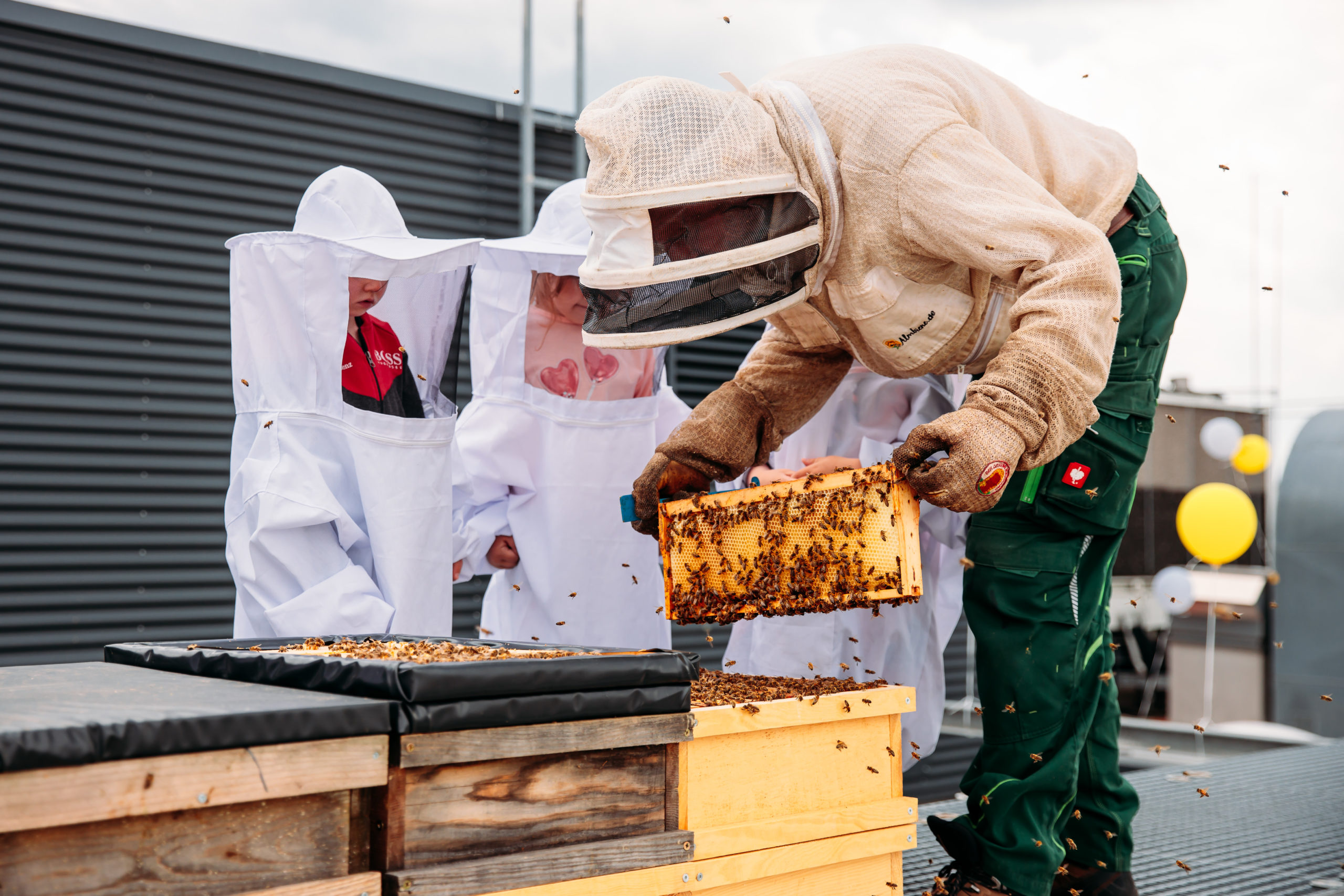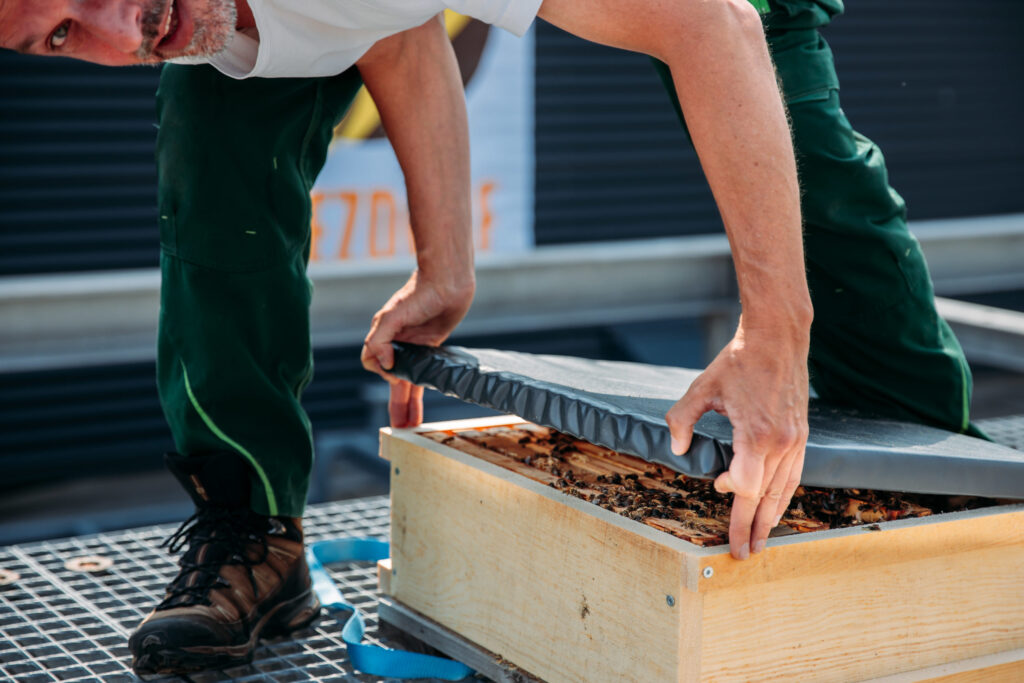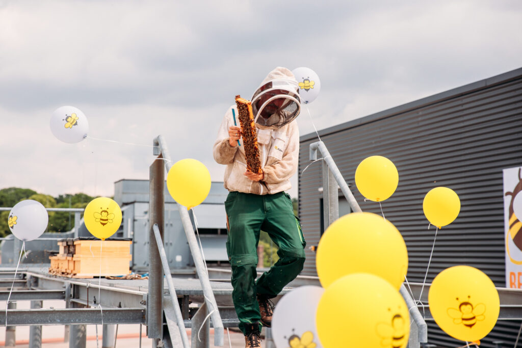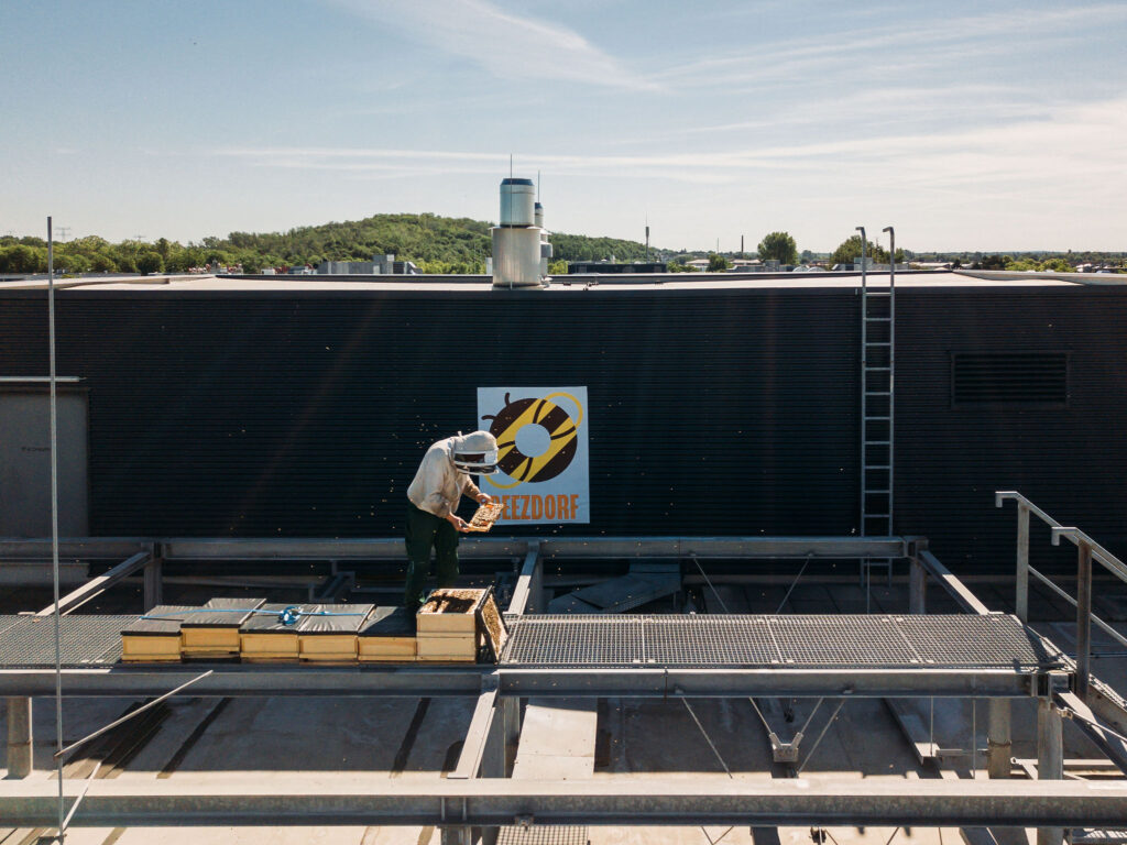 Für das Beezdorf-Projekt wurden insgesamt 6 Bienenvölker auf dem Dach des Biesdorf Centers aufgestellt. Die Honigbienen werden von geschulten Imkern betreut und sind in der Umgebung auf Futtersuche. Mit dem Projekt unterstützen wir nicht nur die Bienen, sondern die gesamte lokale Biodiversität und Artenvielfalt in einem Radius von bis zu fünf Kilometern um das Center.